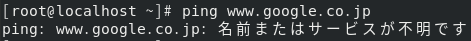 googleに向かってping疎通を行いましたが「名前またはサービスが不明です」と表示されなかったのでファイアウォールの設定もダメそうです。