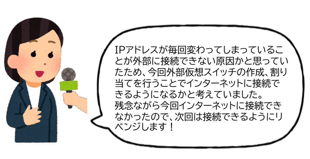 外部用の仮想スイッチを作成し、使用している仮想マシンに割り当てを行ったので、