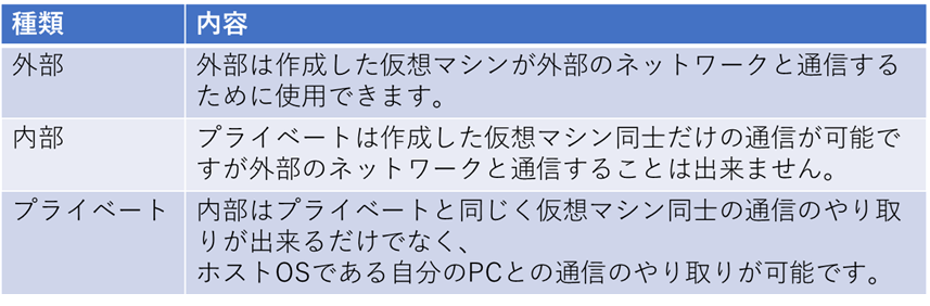 ・外部、内部、プライベートの3種類からネットワークの構成を制御することができる