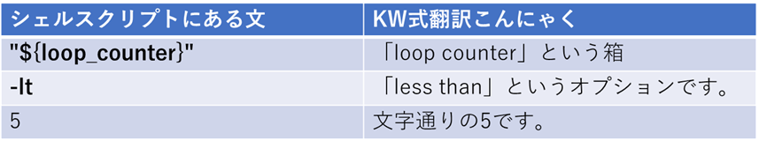 「loop_counter」という変数の箱の現在の値をechoコマンドで表示させます。